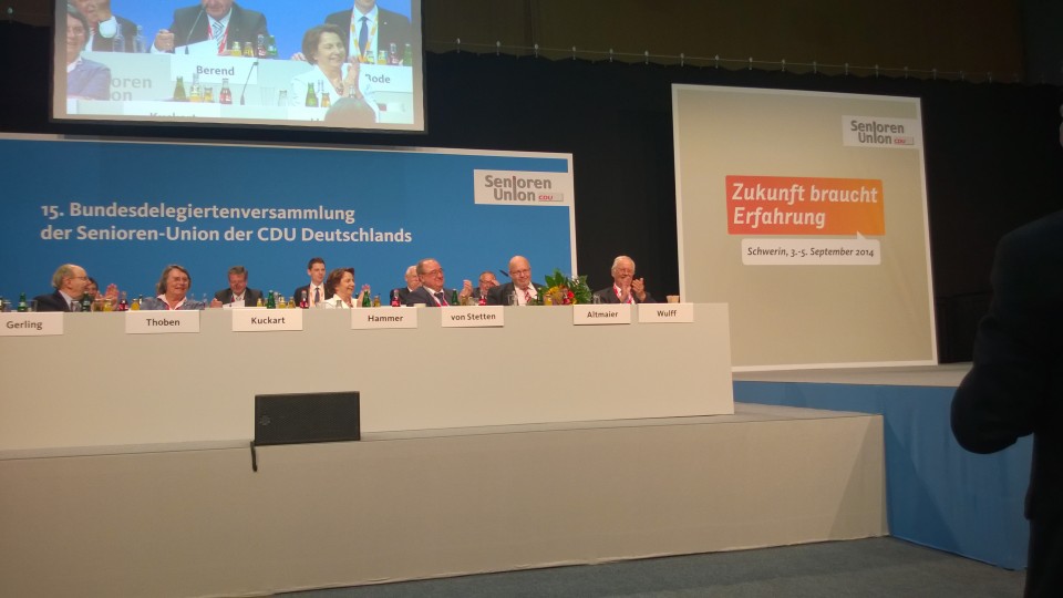 In der Rede des mit über 92 % wiedergewählten Bundesvorsitzenden, Prof. Wulff, wurde deutlich: Die Senioren-Union verlangt mehr Mitbestimmung, und zwar jetzt und heute.