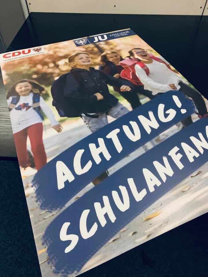 Am vergangenen Wochenende platzierte die Junge Union Cottbus vor den örtlichen Grundschulen die traditionellen Schulstart-Plakate der Union.